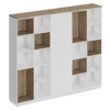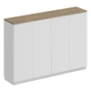 Материалы: ламинированная ДСП; кромка - ПВХ толщиной 0,4; 1 и 2 мм. Толщина столешницы 43 мм, экраны стола – 16 мм; каркасы тумб и шкафов – 18, 25 мм; топы и полки шкафов - 25 мм; фасадные элементы – 16,18 мм.