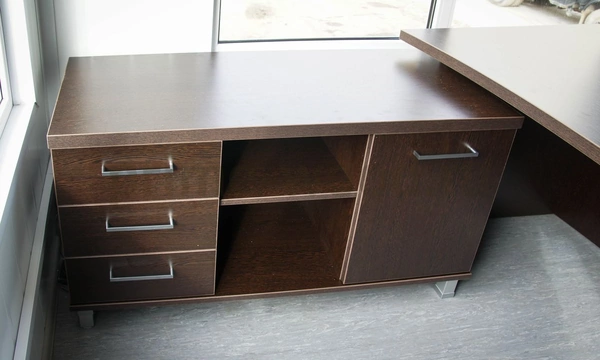 Для оперативного кабинета выбрана мебель из коллекции Riva в нейтральном сером цвете и офисные кресла CHAIRMAN 696 для сотрудников с эргономичной спинкой из сетчатого материала стильного оранжевого цвета. Для руководителя предложены представительные кресла CH-868AXSN/BLACK и CH-868SAXSN/GREY в обивке из искусственной кожи. Комната, где разместилась переговорная зона, обставлена мебелью из коллекции Riva и коллекции First для руководителей в строгом цвете "Венге". Из коллекции First взяли и стол для переговоров, дополнив полукруглыми приставками.
