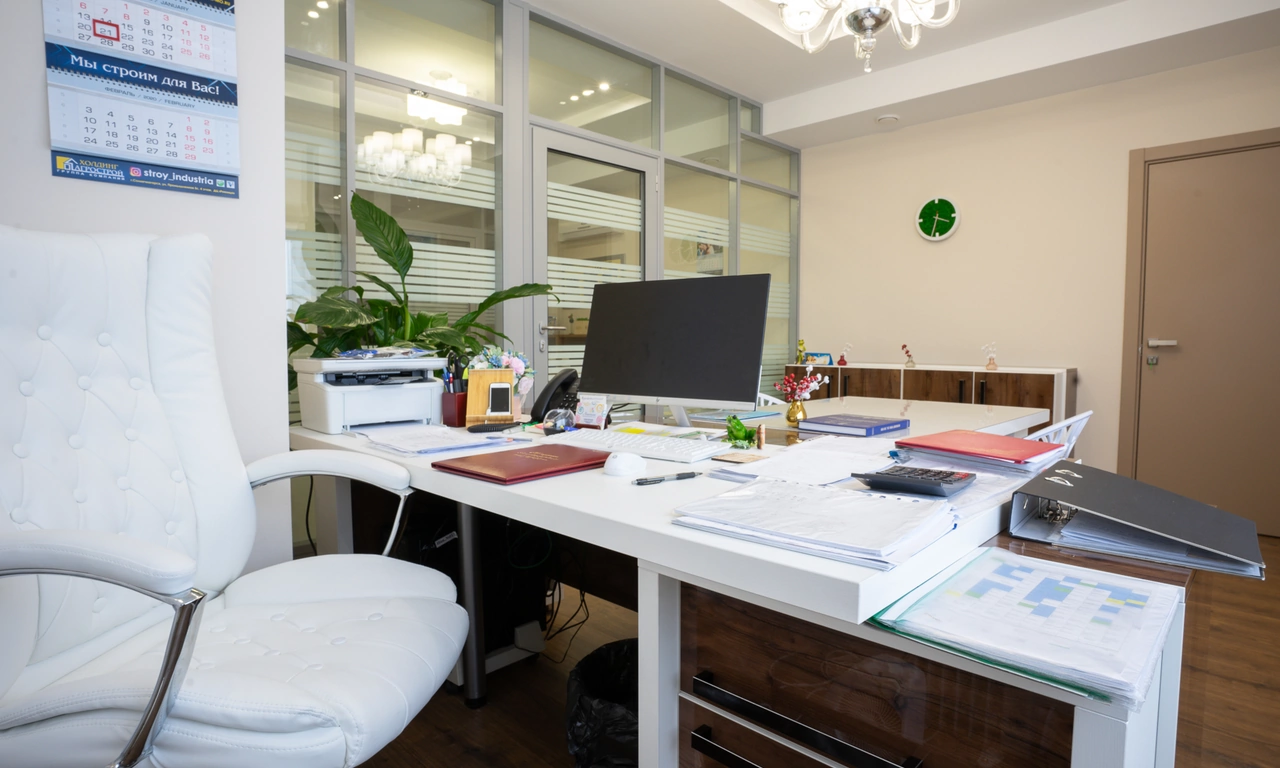 Специализированный застройщик "Стройиндустрия" из города Солнечногорска является частью холдинга "Агрострой", который на протяжении более 20 лет прогрессирует в области строительства жилых и административных зданий, загородных поселков и рекреационных комплексов. Перед нашей компанией была поставлена задача оборудовать качественный, представительный кабинет руководителя.