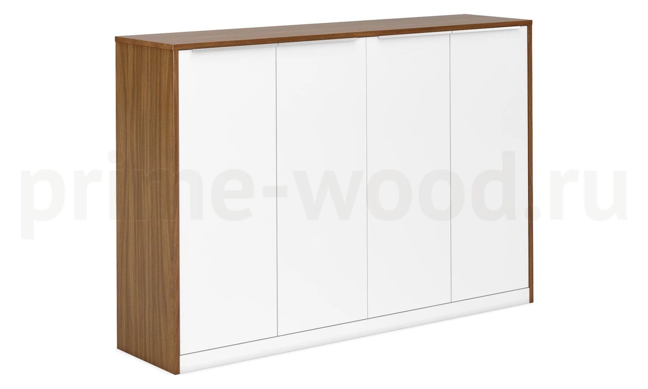 Средний шкаф, 4 белых глянцевых двери, ручки - алюминиевые. Внутренняя часть шкафа - белая.