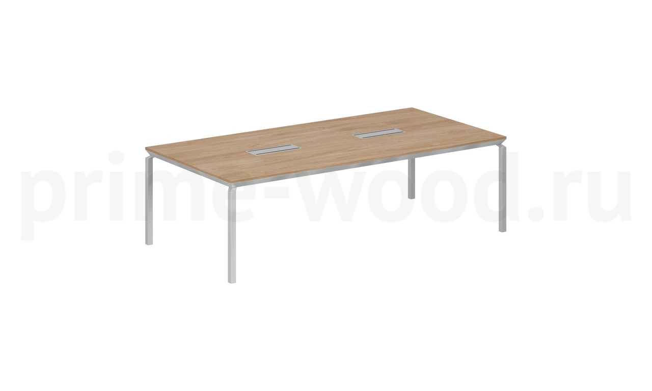Стол для переговоров на МК / cтолешница гикори натуральный, металлокаркас алюминий, заглушки кабель каналов серые